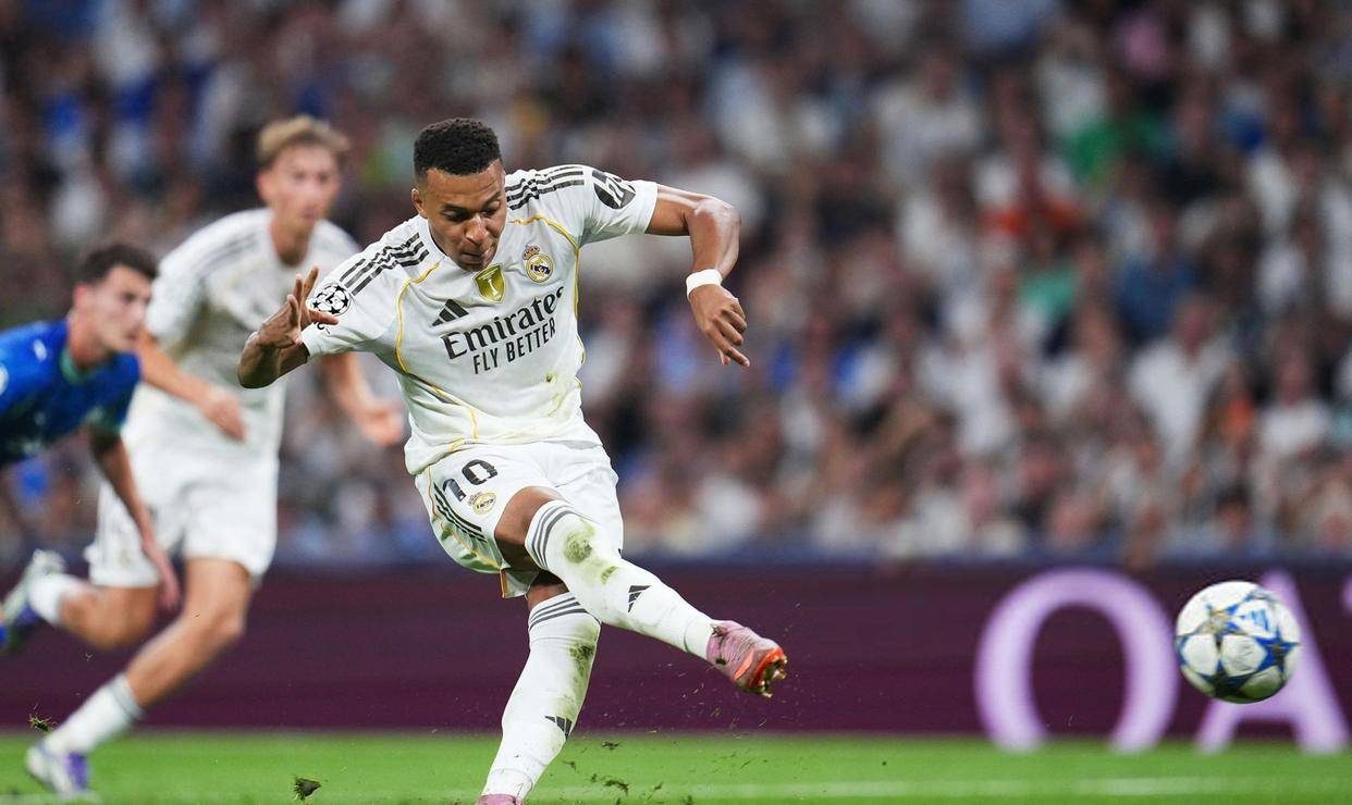 第79分钟,威尼修斯左路传中,球击中马赛后卫梅迪纳的手臂,裁判果断判罚点球,尽管马赛球员强烈抗议。 姆巴佩在第81分钟再次主罚点球命中,完成梅开二度,皇马2-1反超比分。 姆巴佩新赛季5场比赛中攻入第6球,全部来自西甲和欧冠,其中3球为点球,显示其关键时刻的冷静。 他的欧冠总进球达到57球,超越范尼斯特鲁伊独享历史第七位。